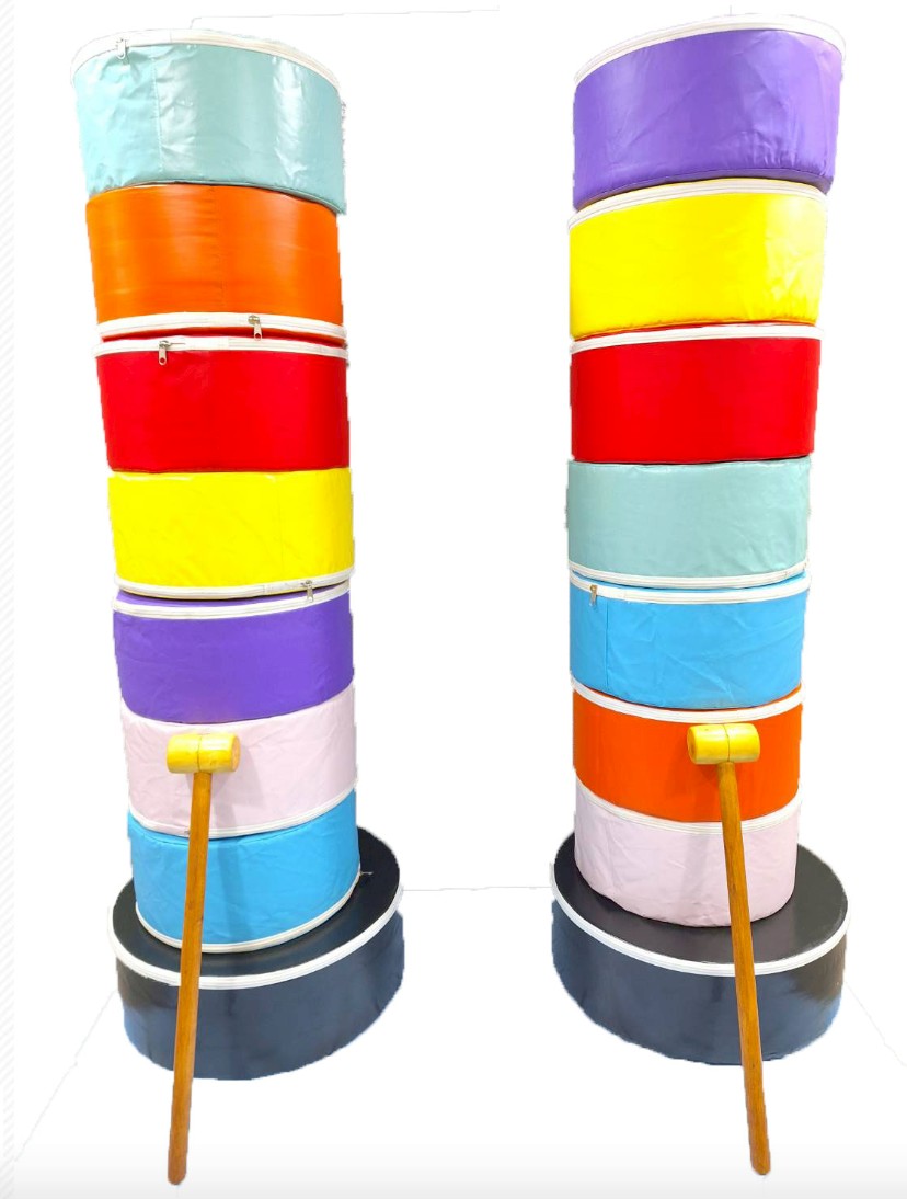 本商品遊戲結合了傳統日式「達摩塔」(不倒翁挑戰)的概念,玩家需要使用遊戲木槌,從底部開始敲擊堆疊的彩色圓柱體進行遊戲。